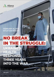 Альянс громадського здоров’я оперує мобільними медичними підрозділами, надаючи життєво необхідні медичні послуги населенню у прифронтових та найменш доступних районах. Вони впровадили інтегровані первинні медичні послуги, скринінг, діагностику та лікування ВІЛ і ТБ, охопивши 26 500 людини у 494 віддалених локаціях у шести регіонах поблизу фронту, які інакше не мали б доступу до медичної допомоги.